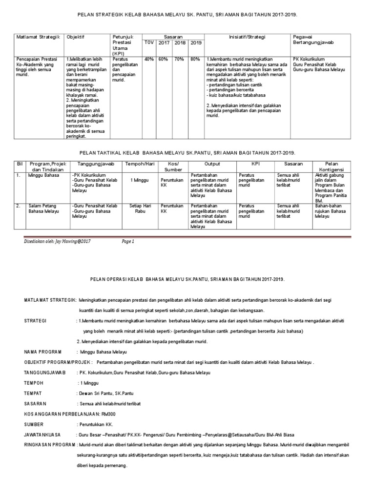 Pelan operasi mata pelajaran bahasa malaysia. Perancangan strategik untuk panitia bahasa melayu sekolah rendah.full description. Perancangan strategik panitia bahasa melayu 2014 2016 pdf by yusnita binti alwi issuu. Perancangan perancan gan strategik panitia bahasa melayusjk(t) ladang rem. Perancangan strategik persatuan bahasa melayu 2015 hingga 2019 visi :