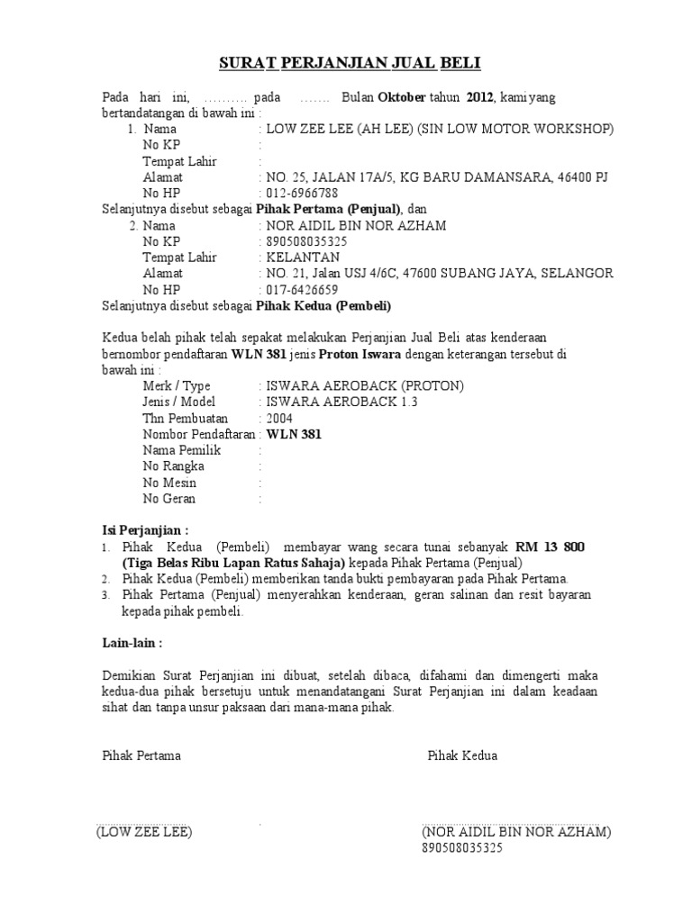 Saya yang bertanda tangan di bawah ini dalam surat perjanjian jual beli tanah ini disebut sebagai pihak pembeli. Nah, demikianlah pembahasan seputar surat perjanjian jual beli rumah beserta contohnya yang patut anda cermati. Bukti transaksi dibuat berdasarkan nilai dari barang yang diperjualbelikan. Surat untuk jual beli merupakan surat yang sengaja dibuat antara pihak penjual dan pihak pembeli. Surat perjanjian jual beli dapat dijadikan alat bukti apabila ada salah satu pihak yang melanggar perjanjian yang telah disepakati sebelumnya. Dalam dunia bisnis, surat perjanjian jual beli sangat penting bagi penjual maupun pembeli. Surat perjanjian jual beli motor. Fungsi surat perjanjian untuk menjelaskan kewajiban dan hak kedua belah pihak, kewajiban pembeli membayar uang kepada penjual, dan penjual berhak atas uang tersebut. Semoga contoh surat dalam bentuk format doc (word) dan pdf. Surat perjanjian sendiri memiliki banyak jenis. Pembelian mobil melalui penjual pribadi juga harus melibatkan penandatanganan surat perjanjian jual beli antara kedua belah pihak. Surat perjanjian sendiri mencakup banyak hal salah satunya untuk jual beli tanah. Hal ini menyangkut kasus kondisi sengketa tanah yang marak.